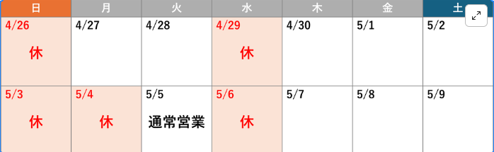 ゴールデンウィーク期間の休業につきましてご案内いたします。